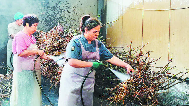 走进牡丹区牡丹办事处、黄堽镇等牡丹主产区,随处可见牡丹生产企业忙碌的身影,工人们各司其职,忙着种苗加工、生产与销售。“秋季是牡丹种苗出口的黄金季节。出口国外的种苗对品质要求很高,必须做到无活虫、无虫卵、无残留泥土,折枝断根或带有病斑、虫斑的种苗都要剔除。经过挑拣,还要依次完成药物浸泡、检验检疫、熏蒸等一系列流程,才能达到出口标准。”吴勇华一边指导工人加工,一边向牡丹晚报全媒体记者解释。