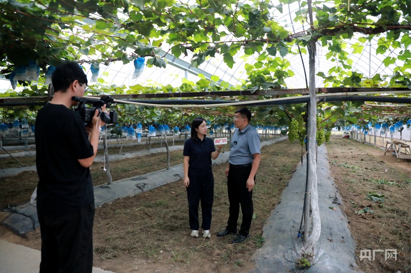 当日,“央广原乡行·金秋绘丰收”特别直播开启,山东篇落地长兴现代农业创新示范区。“你尝尝,我们这个‘阳光玫瑰’甜度能稳定在18—22度之间,而且果粒重量能达到15—18克,形成了‘粒大、高糖、脆香’等独特品质。”直播过程中,山东长兴农业产业园负责人孙庆录边讲解边递了一串给记者。他介绍,这里的葡萄种植早已告别了“看天吃饭”的传统模式。