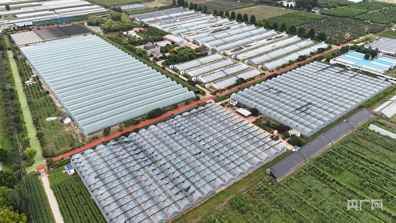 在泰安新泰市楼德镇的长兴现代农业创新示范区内,连片的葡萄大棚在阳光下熠熠生辉。