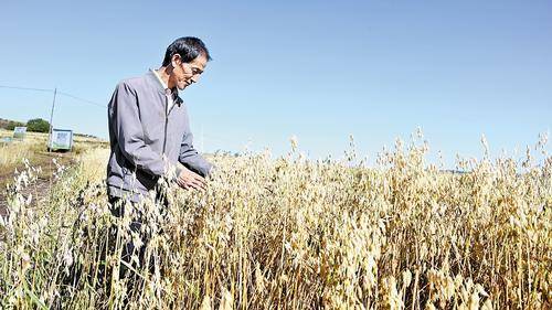 9月6日,张北县大河镇鹿尾沟村村民在查看有机燕麦成熟情况。 本报记者郭晓通摄